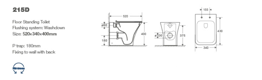 • Прилегание унитаза к стене: