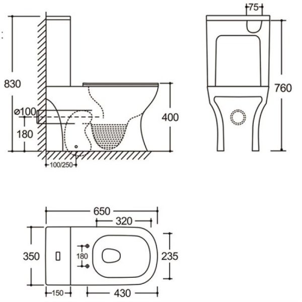 • Прилегание унитаза к стене:
