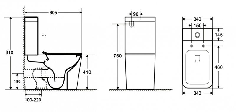 • Прилегание унитаза к стене: