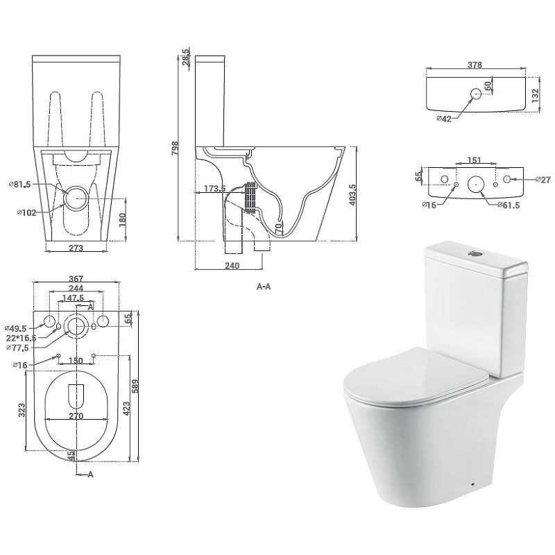 Унитаз компакт Hansmann keramik Round New УНИ0013 с бачком и сиденьем Микролифт