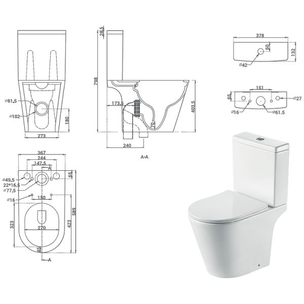 Сиденье из дюропласта с антибактериальным покрытием, с плавным опусканием крышки (Soft-Close - микролифт), быстросъемное.