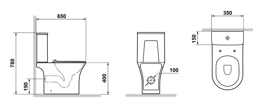 • Прилегание унитаза к стене: