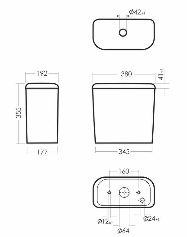 Размеры унитаза-компакта: 380 x 610 x 780