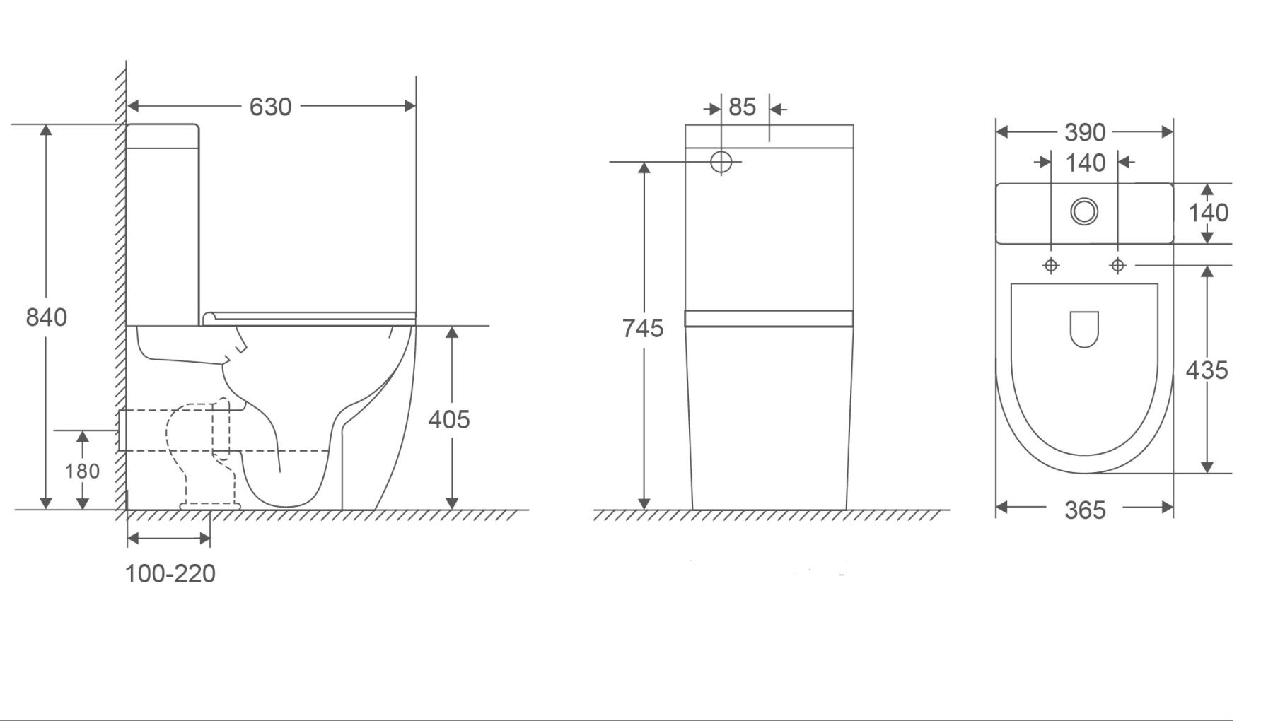 • Прилегание унитаза к стене: