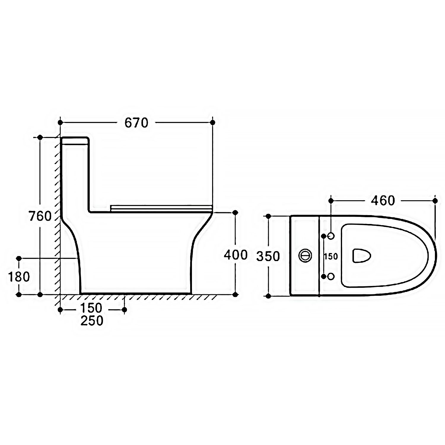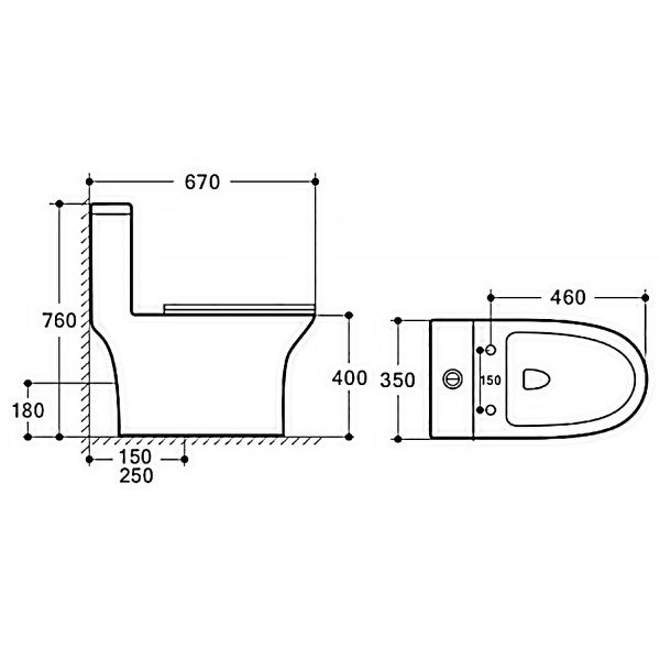 • Прилегание унитаза к стене: