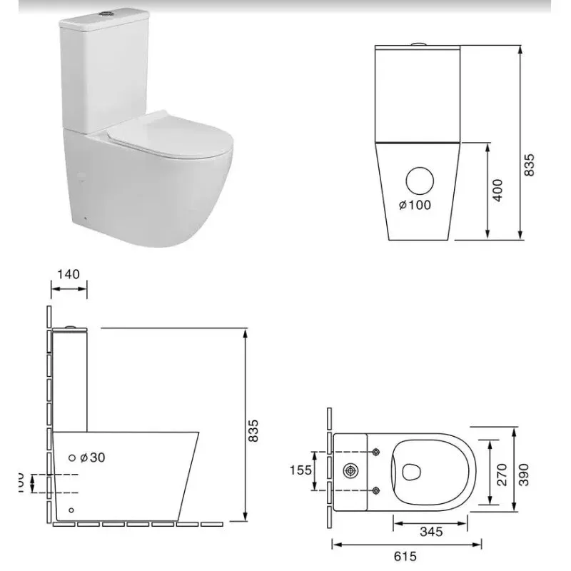 Унитаз-компакт безободковый Milleau Ferme MYL2055GW, крышка микролифт, цвет белый