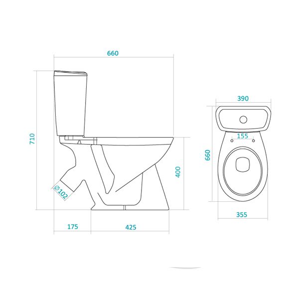 Унитаз напольный Santek - Бриз с сиденьем полипропилен с диагональным выпуском, с однорежимной арматурой.