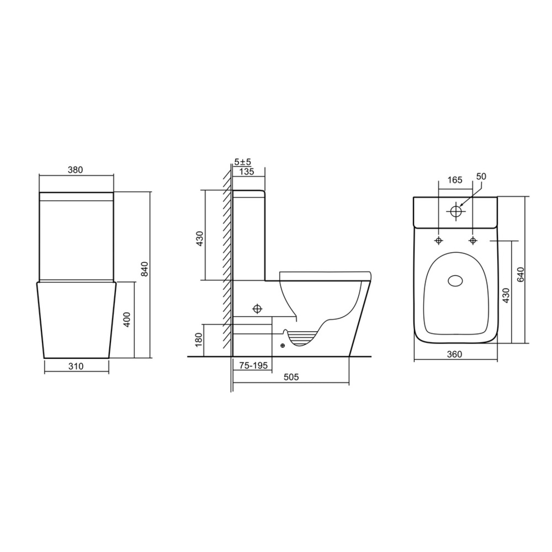 • Прилегание унитаза к стене: