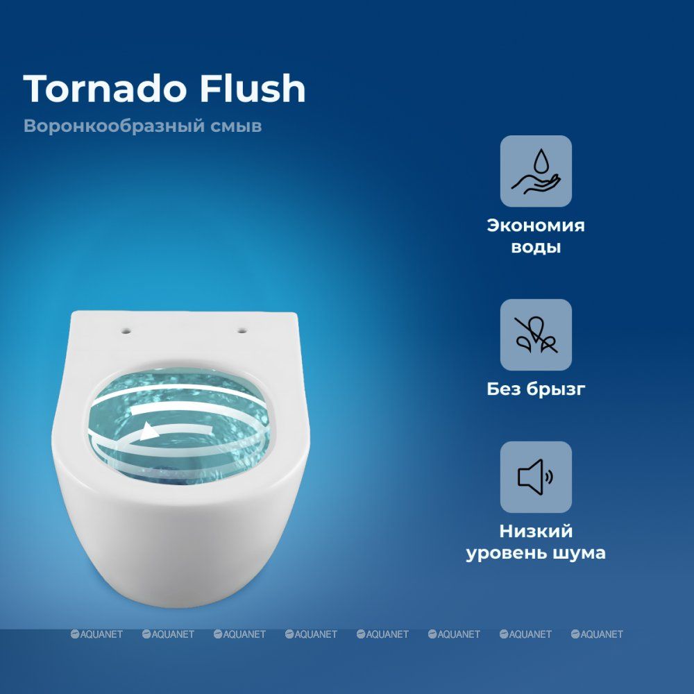 Унитаз подвесной Aquanet Cetus W Short Tornado – это не просто сантехнический прибор, а настоящий шедевр инновационного дизайна и функциональности. Оснащённый самой эффективной системой смыва TORNADO, он обеспечивает мощный и при этом экономичный уход за чистотой. Уникальная конструкция, создающая эффект водоворота, позволяет воде стремительно убирать все загрязнения, что гарантирует полный уход за внутренней поверхностью унитаза.