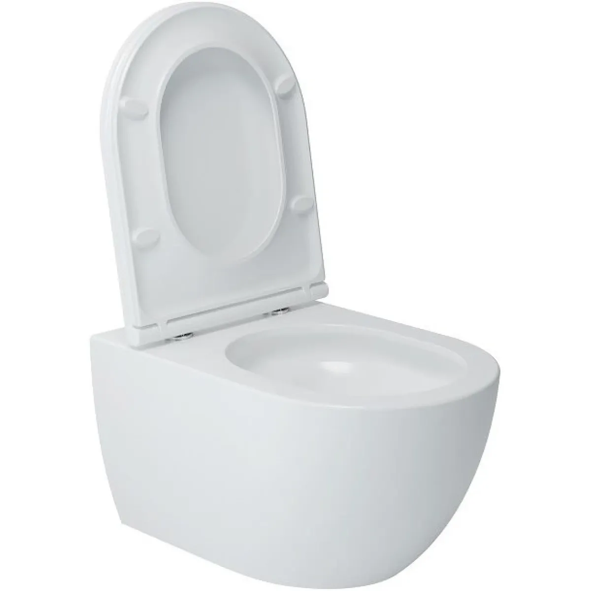 Оснащение: чаша унитаза безободковая, сиденье с микролифтом из дюропласта, быстросъёмное с металлическим креплением