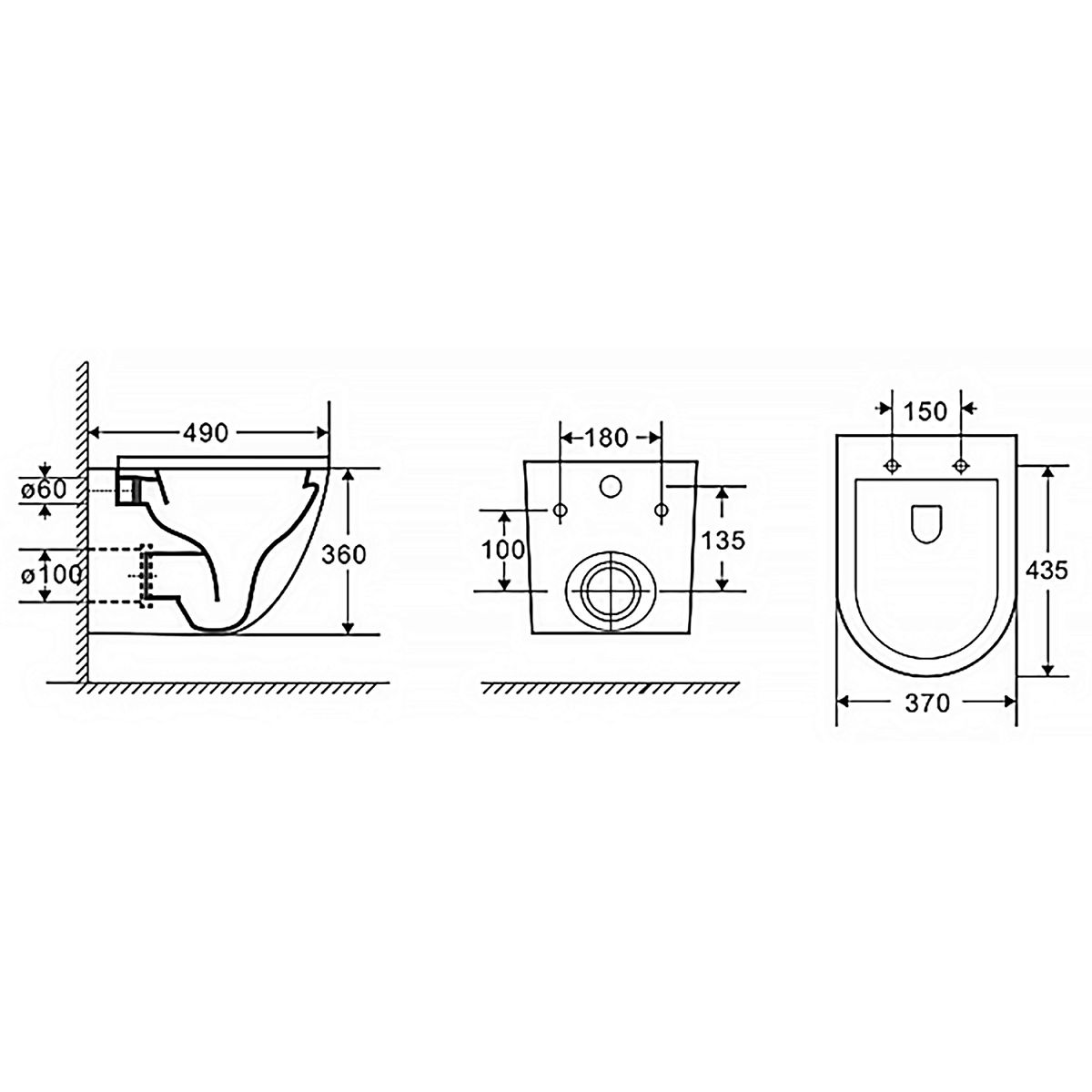 • Прилегание унитаза к стене: