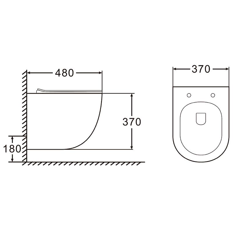 • Прилегание унитаза к стене:
