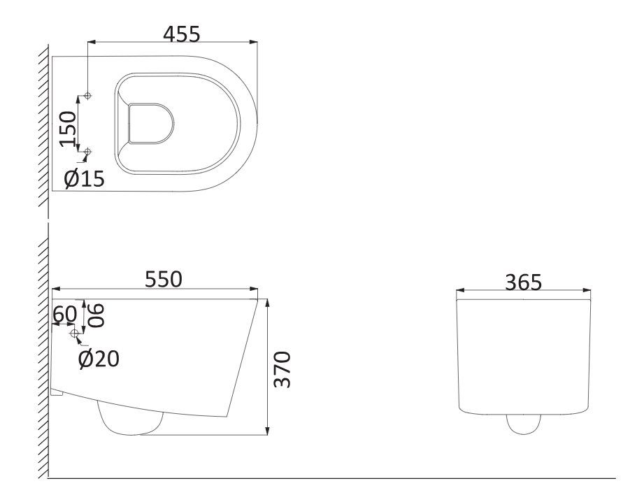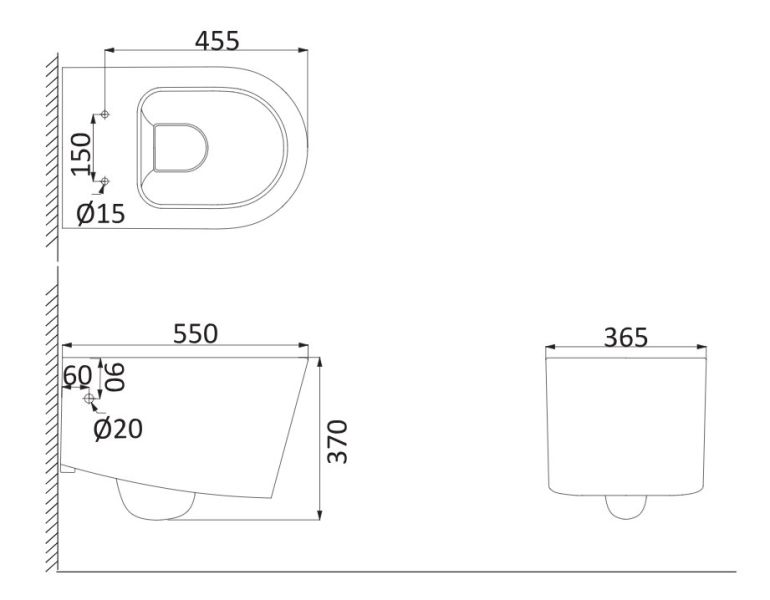 • Прилегание унитаза к стене:
