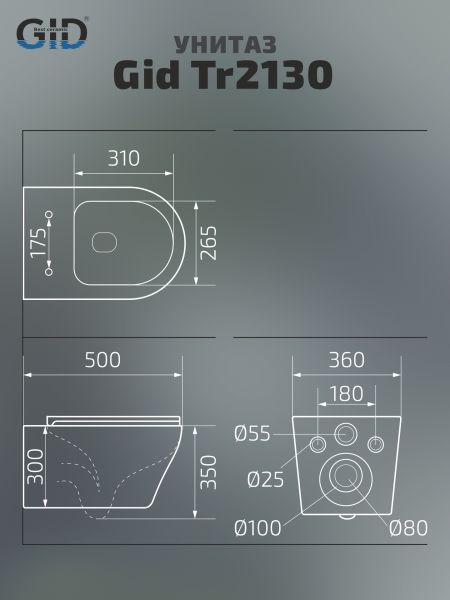 Унитаз подвесной Gid Tr2130 62235Y белый 50x36x35 купить