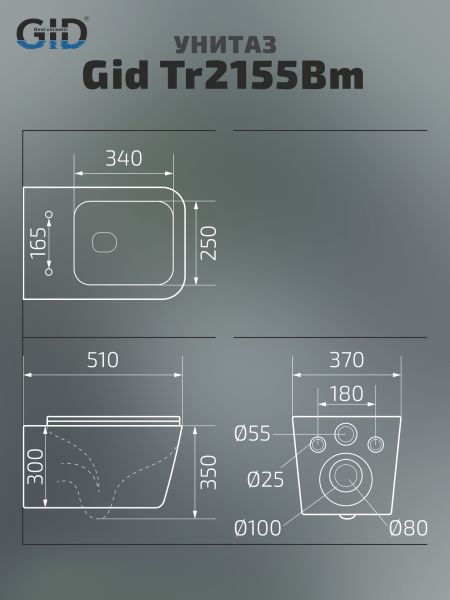 Унитаз подвесной Gid Tr2155Bm 62239Y черный матовый 51x37x35 купить