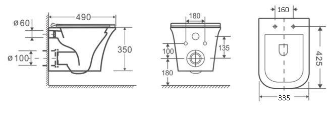 Прилегание унитаза к стене:вплотную
