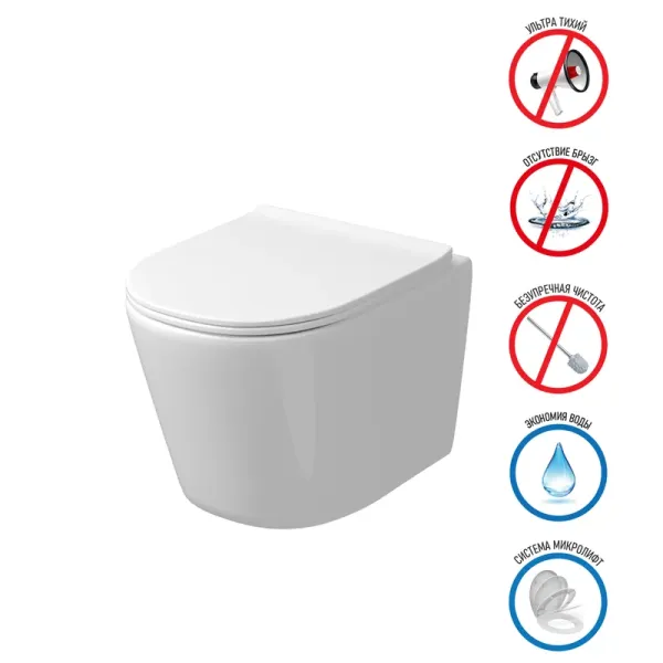 • Безободковый: чаша без труднодоступных мест для уборки, полностью омывается водой