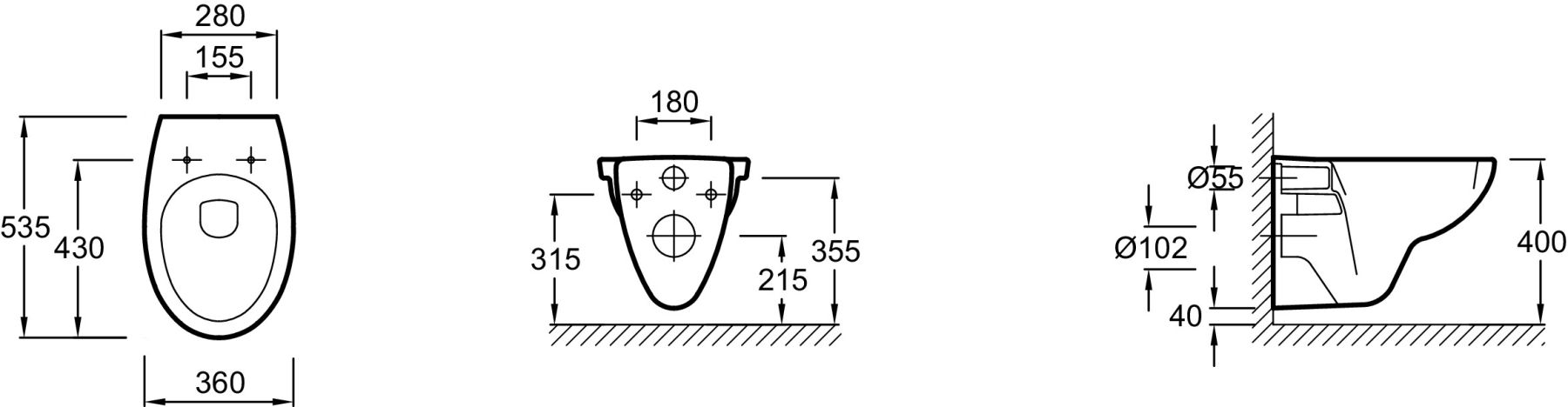 • Прилегание унитаза к стене: