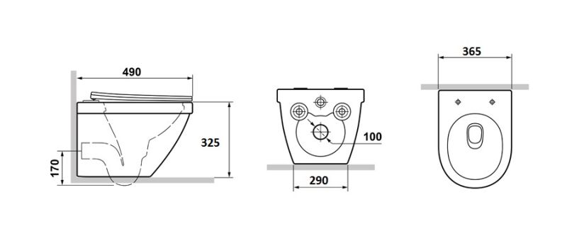 • Прилегание унитаза к стене:
