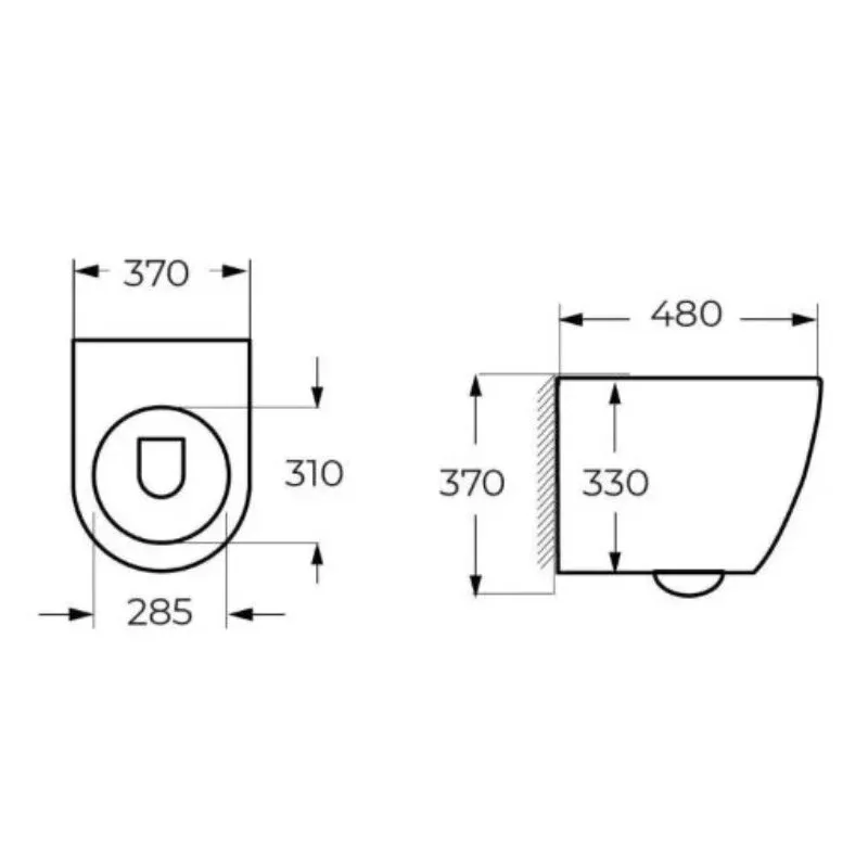 • Прилегание унитаза к стене:
