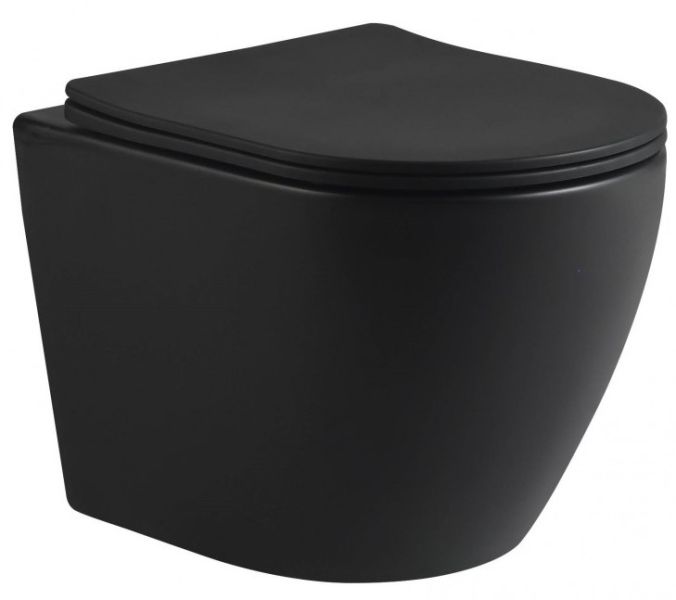 Унитаз подвесной SantiLine, безободковый, сиденье микролифт, цвет черный матовый, SL-5025MB