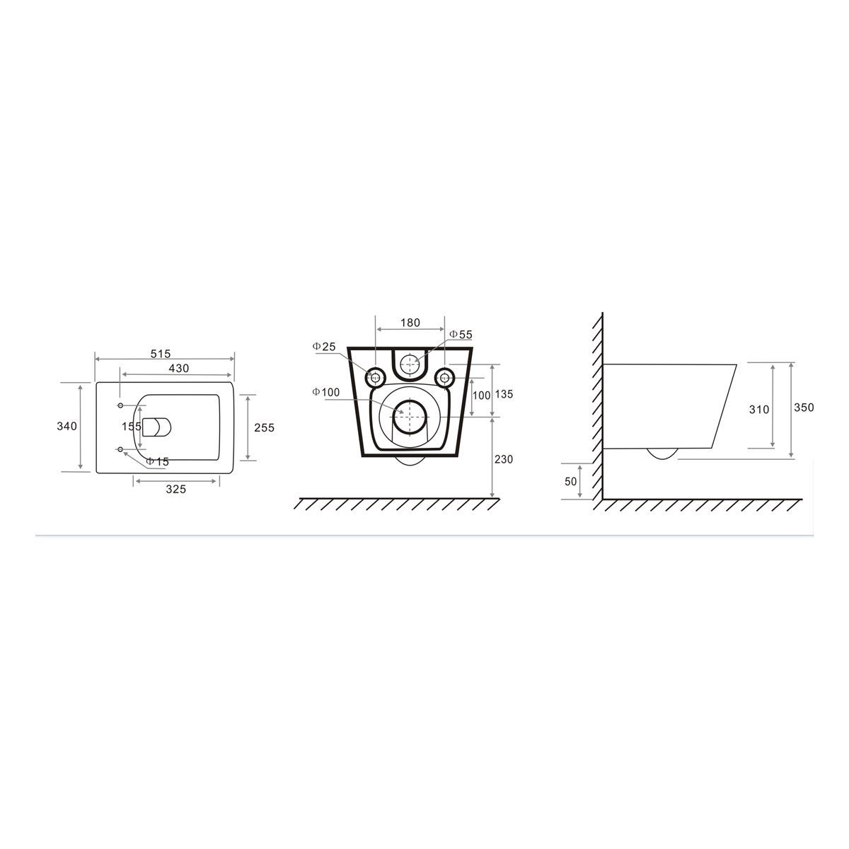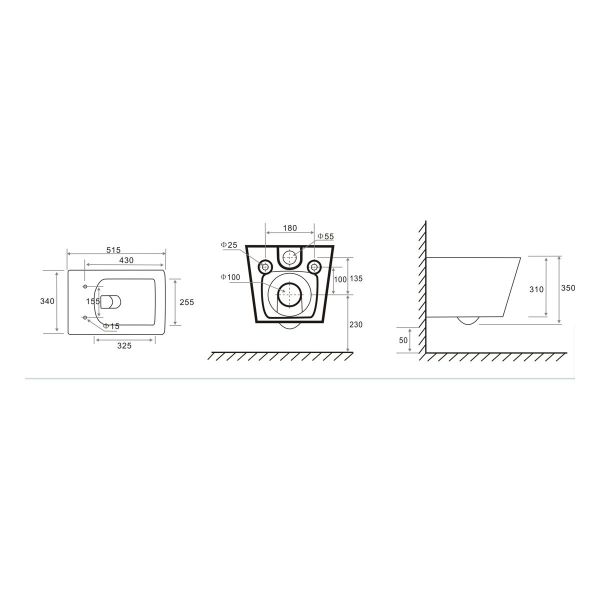 Подвод воды:определяется системой инсталляции
