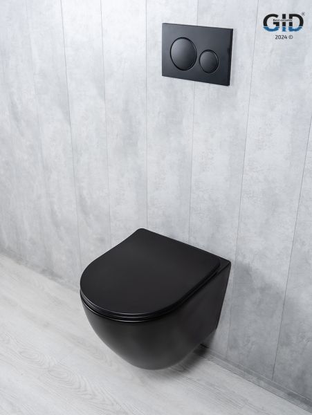 Подвесной безободковый унитаз GiD Tr2122TF-Bm - модель с инновационной системой «Tornado», которая обеспечивает эффективный и экономичный слив воды. Изготовлена из высококачественной мелкопористой керамики черного цвета с матовым покрытием. Сиденье из дюропласта с функцией микролифта гарантирует плавное закрытие крышки. Благодаря антигрязевому покрытию и воронкообразной овальной чаше унитаз обеспечивает высокий уровень гигиены и легкость ухода. Испанское качество и европейские стандарты соответствуют самым высоким требованиям эксплуатации. Комплект: подвесной унитаз GiD Tr2122TF-Bm с креплениями для скрытого монтажа; сиденье с креплениями.