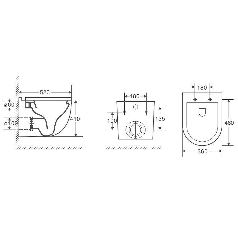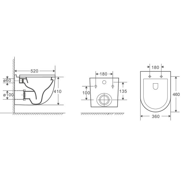 • Прилегание унитаза к стене: