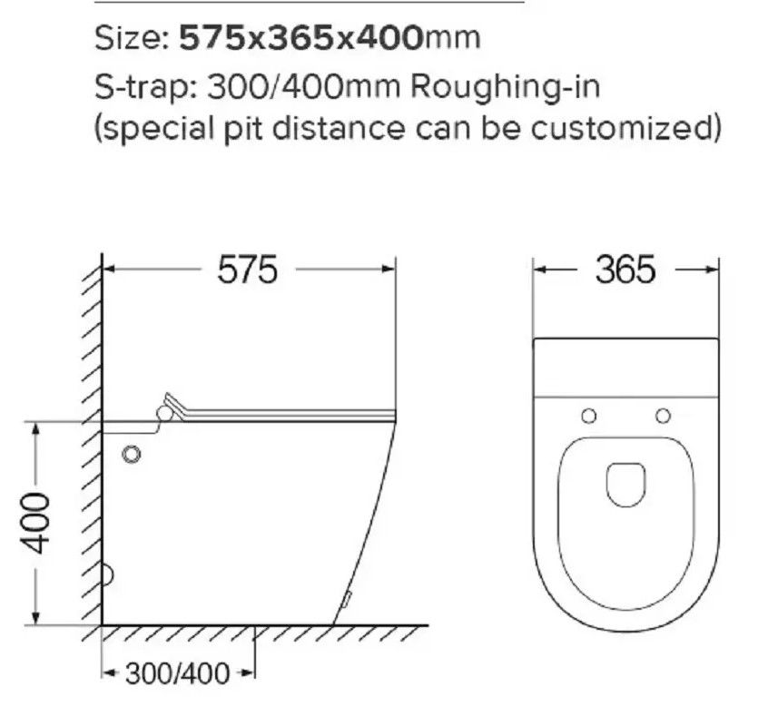 • Прилегание унитаза к стене: