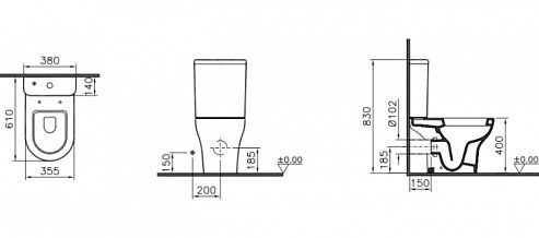Унитаз Vitra Zentrum 9824B003-7207 напольныйZentrum Rim-Ex Комплект безободкового унитаза, механизм смыва Geberit