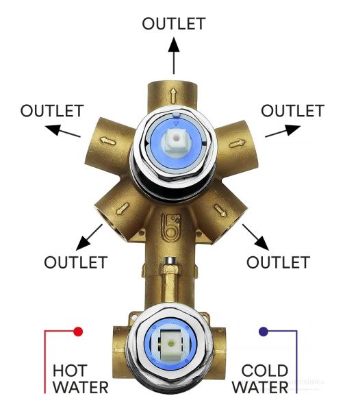 Универсальная скрытая часть Bossini предназначена для подключения монорычажного смесителя с возможностью управления от 2 до 5 выходов. Это гибкое решение позволяет эффективно распределять водные потоки между несколькими источниками воды, обеспечивая удобство в управлении и максимальную функциональность системы.