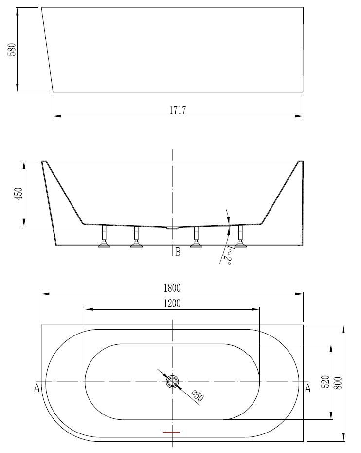 Ванна акриловая Vincea VBT-402-1800R, 1800*800*580, цвет белый, правая, щелевой перелив