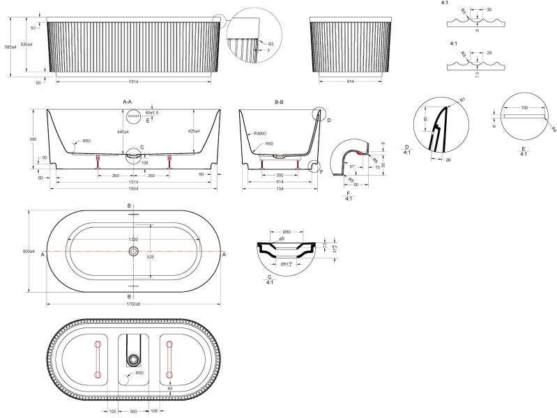 Ванна акриловая Vincea VBT-709-1700, цвет белый, щелевой перелив
