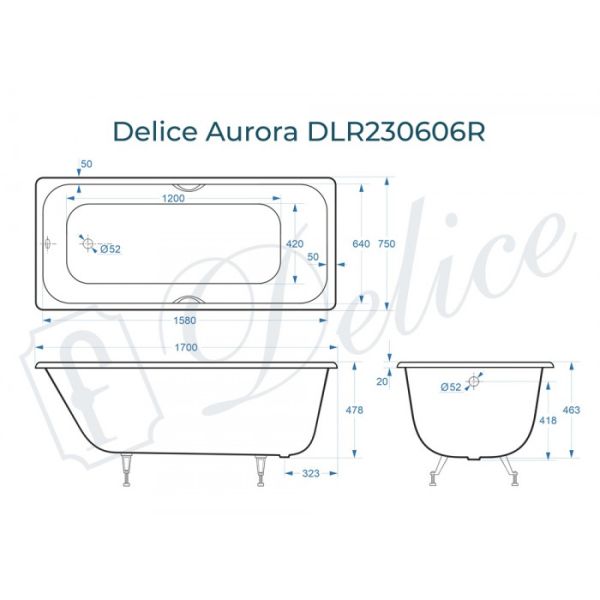 Ванна чугунная Delice Aurora DLR230606 170x75