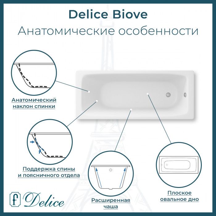 Ванна чугунная Delice Biove DLR220509R-AS 170x75 с ручками купить