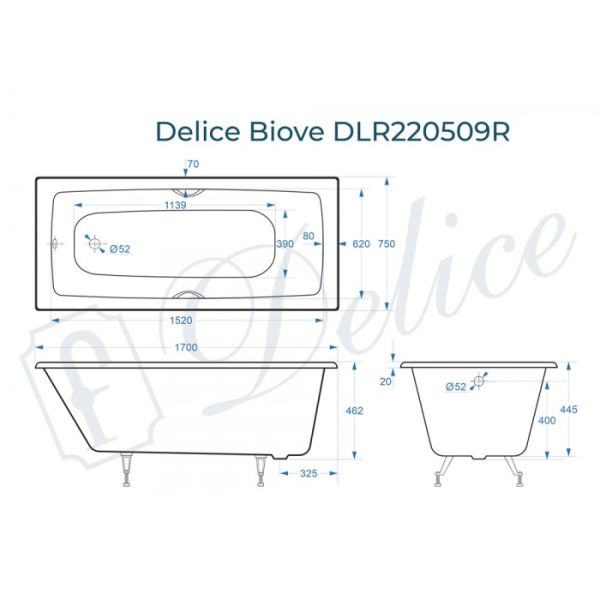 Ванна чугунная Delice Biove DLR_220509R 170x75 с ручками