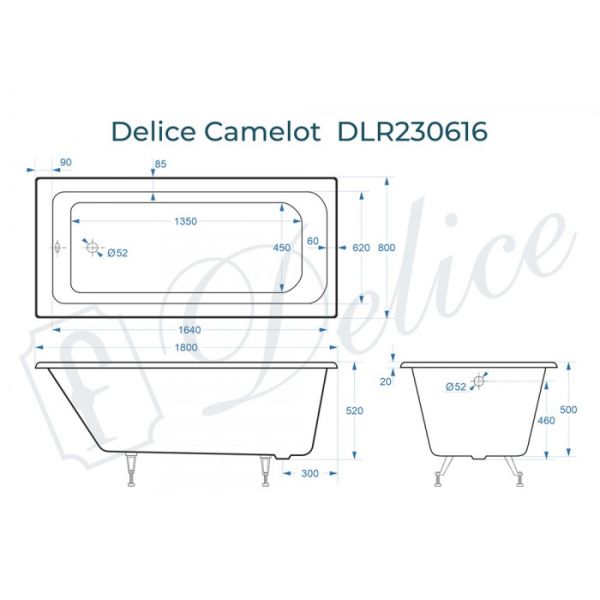 Ванна чугунная Delice Camelot DLR230616 180х80
