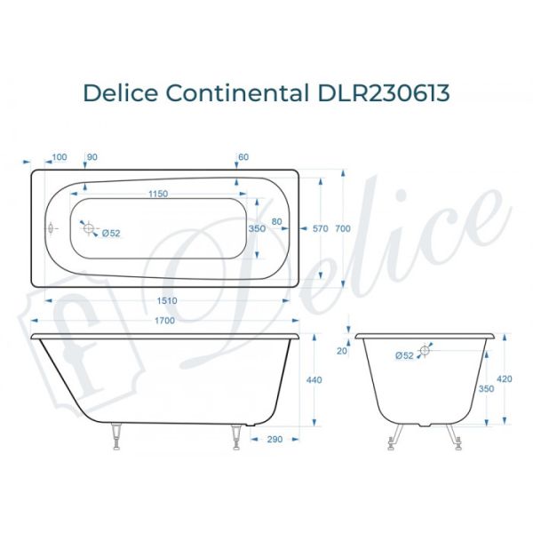 Ванна чугунная Delice Continental DLR230613 170x70