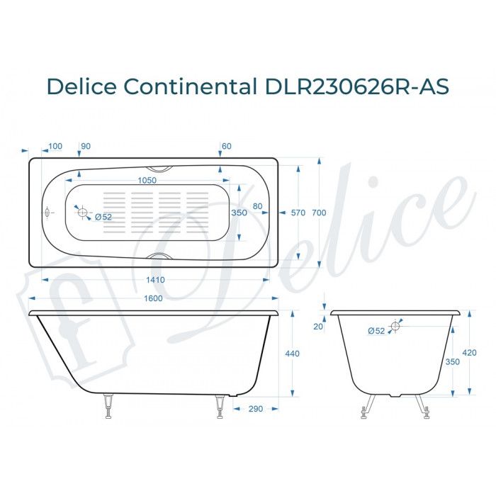 Delice Continental 160х70 с отверстиями под ручки - это уютная стильная модель чугунной ванны для вашего дома. Дизайн ванны спроектирован на основе классической формы с учетом современных тенденций в сантехнике. Внутреннее пространство чаши имеет увеличенный объем, анатомическую форму и широкое дно для максимального комфорта при эксплуатации. Continental 160х70 - это отличное решение для небольших и средних ванных комнат.