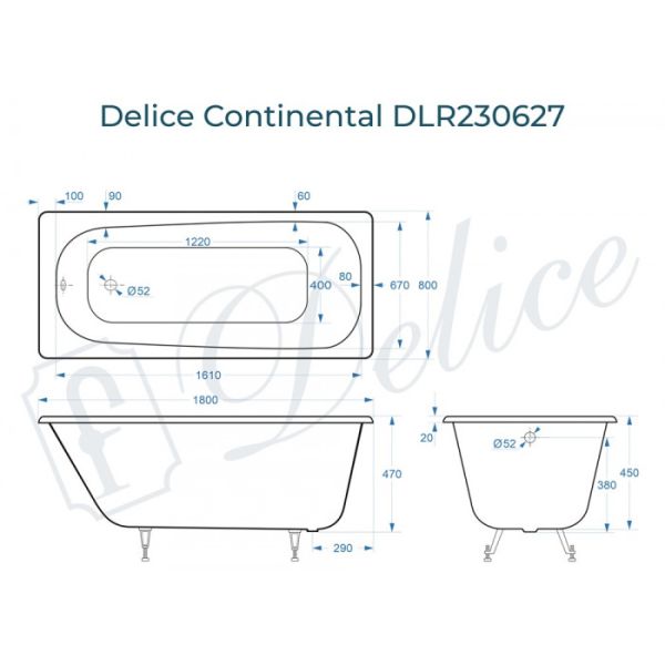 Delice Continental 180х80 - это уютная стильная модель чугунной ванны для вашего дома. Дизайн ванны спроектирован на основе классической формы с учетом современных тенденций в сантехнике. Внутреннее пространство чаши имеет увеличенный объем, анатомическую форму и широкое дно для максимального комфорта при эксплуатации. Continental 180х80 - это отличное решение для больших ванных комнат.