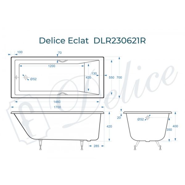 Ванна чугунная Delice Eclat DLR230621R 170х70 с отверстиями под ручки купить