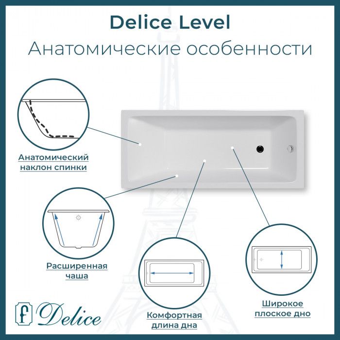 Чугунная ванна Delice - это отличный способ отвлечься от повседневных проблем и избавиться от стресса во время принятия водных процедур. Основным преимуществом ванны из чугуна является простота в уходе и устойчивость эмали ванны перед большинством механических повреждений.Прямоугольная форма ванны идеально подойдет к любому интерьерному решению. Пристенный монтаж - наиболее традиционный вид установки. Оптимальная глубина составляет 46,2 см, что позволяет принимать ванну с максимальным комфортом. Ванна Delice выполнена со строгим соблюдением всех актуальных элементов современного стиля. Ванны Delice производятся с исключительными стандартами качества, по сертифицированным технологиям, с использованием надежных безвредных материалов. Чугунна ванна Delice сделает любое дизайнерское решение не только практичным в плане использования, но и стильным с точки зрения эстетики.