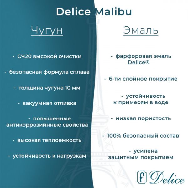 Ванна чугунная Delice Malibu DLR230610R 180x80 с отверстиями под ручки купить