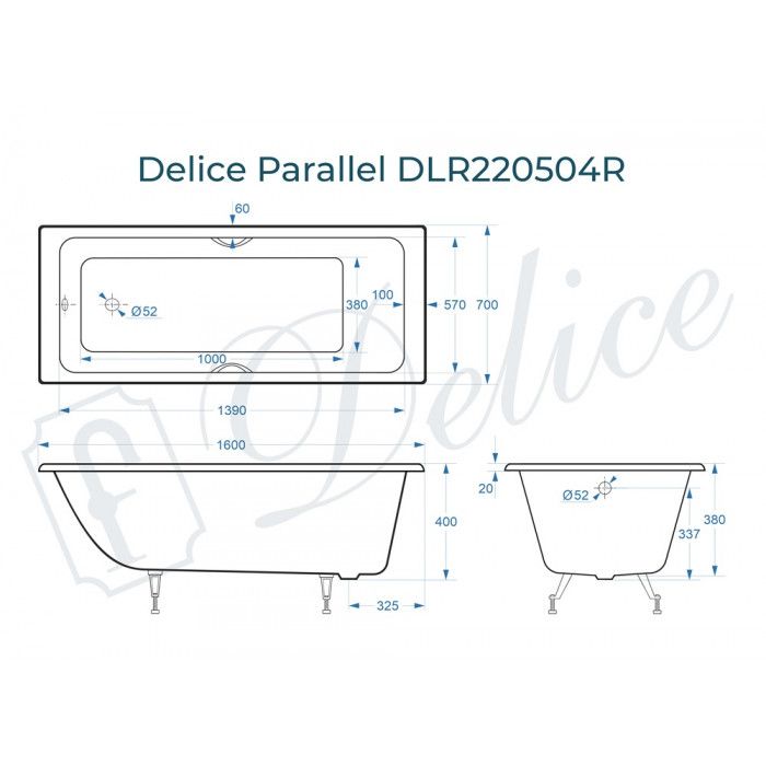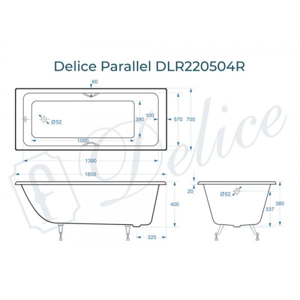 Ванна чугунная Delice Parallel DLR 220504R 160x70 с ручками купить