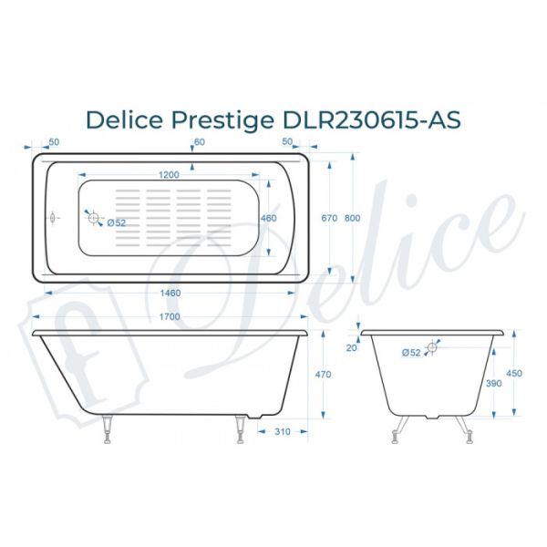 Ванна чугунная Delice Prestige DLR230615-AS 170х80 с антискользящим покрытием