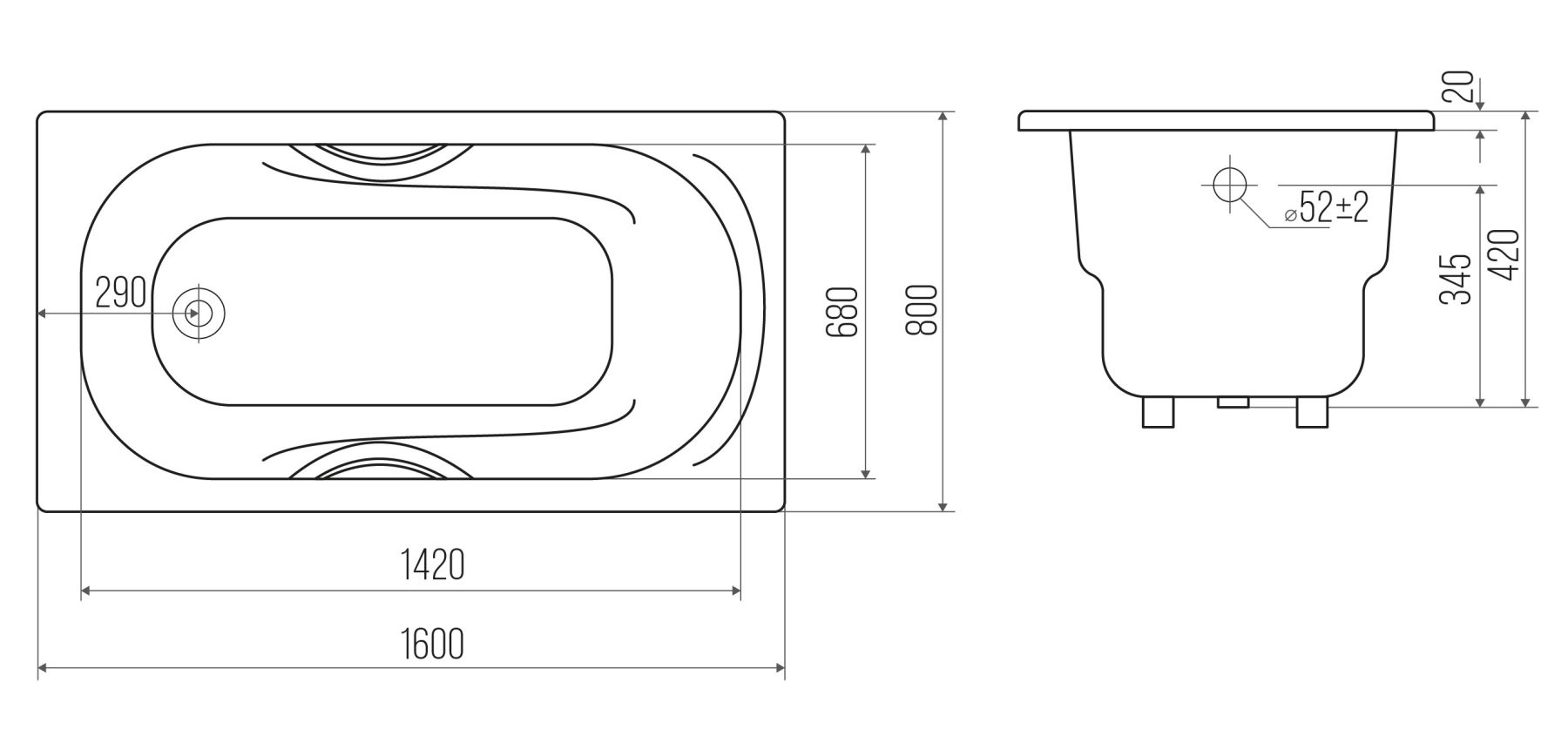 Ванна чугунная Goldman Nova NV16080 160x80см с ножками купить
