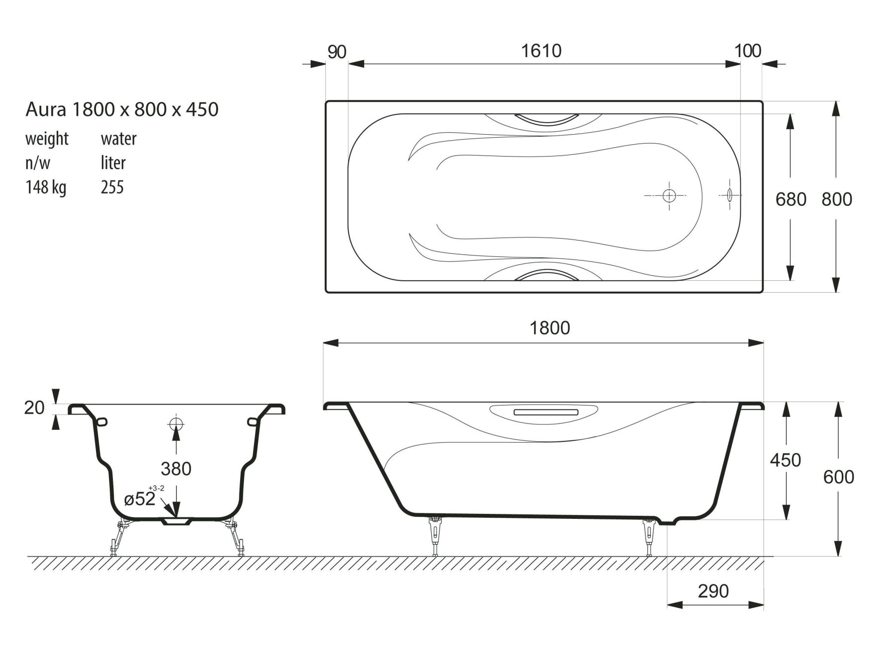 КомплектацияВанна чугунная Vinsent Veron Aura 180x80 Ручки приобретаются отдельно Ножки приобретаются отдельно Метизы для ручек и ножек в комплекте
