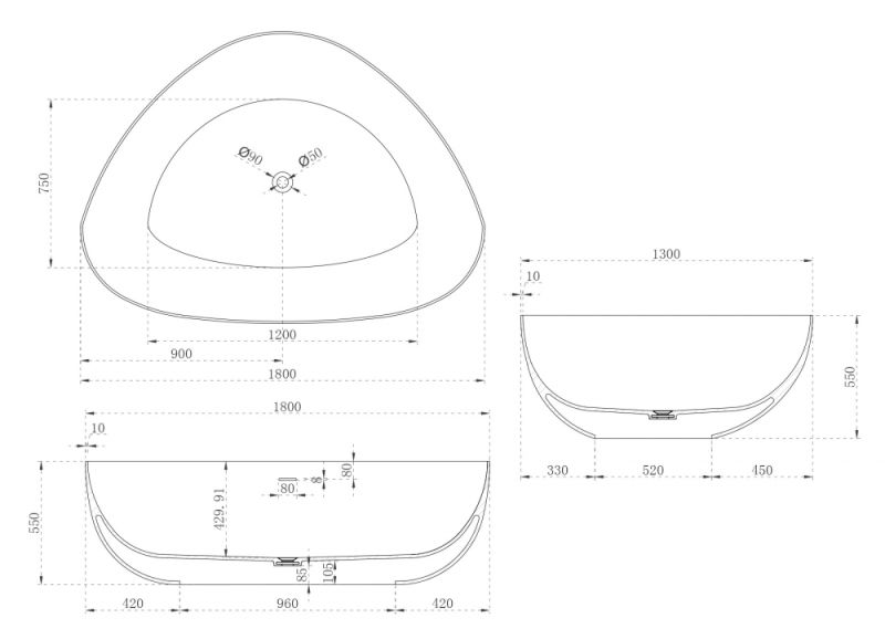 Ванна из искусственного камня ABBER Stein AS9608 130x180см белый матовый