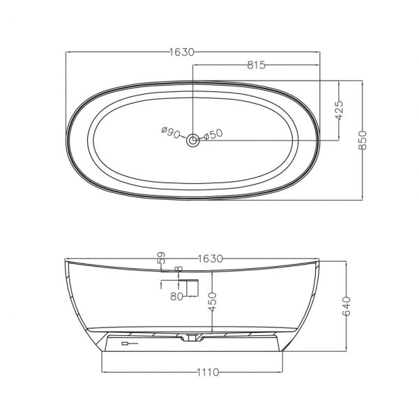 Ванна из искусственного камня ABBER Stein AS9615-1.6 163x85см белый матовый