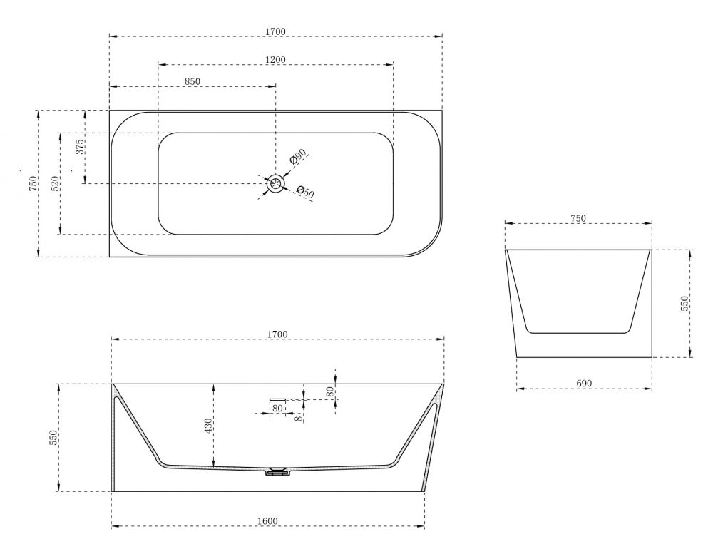 Ванна из искусственного камня ABBER Stein AS9621-1.7 L левая 170x75см белый матовый купить